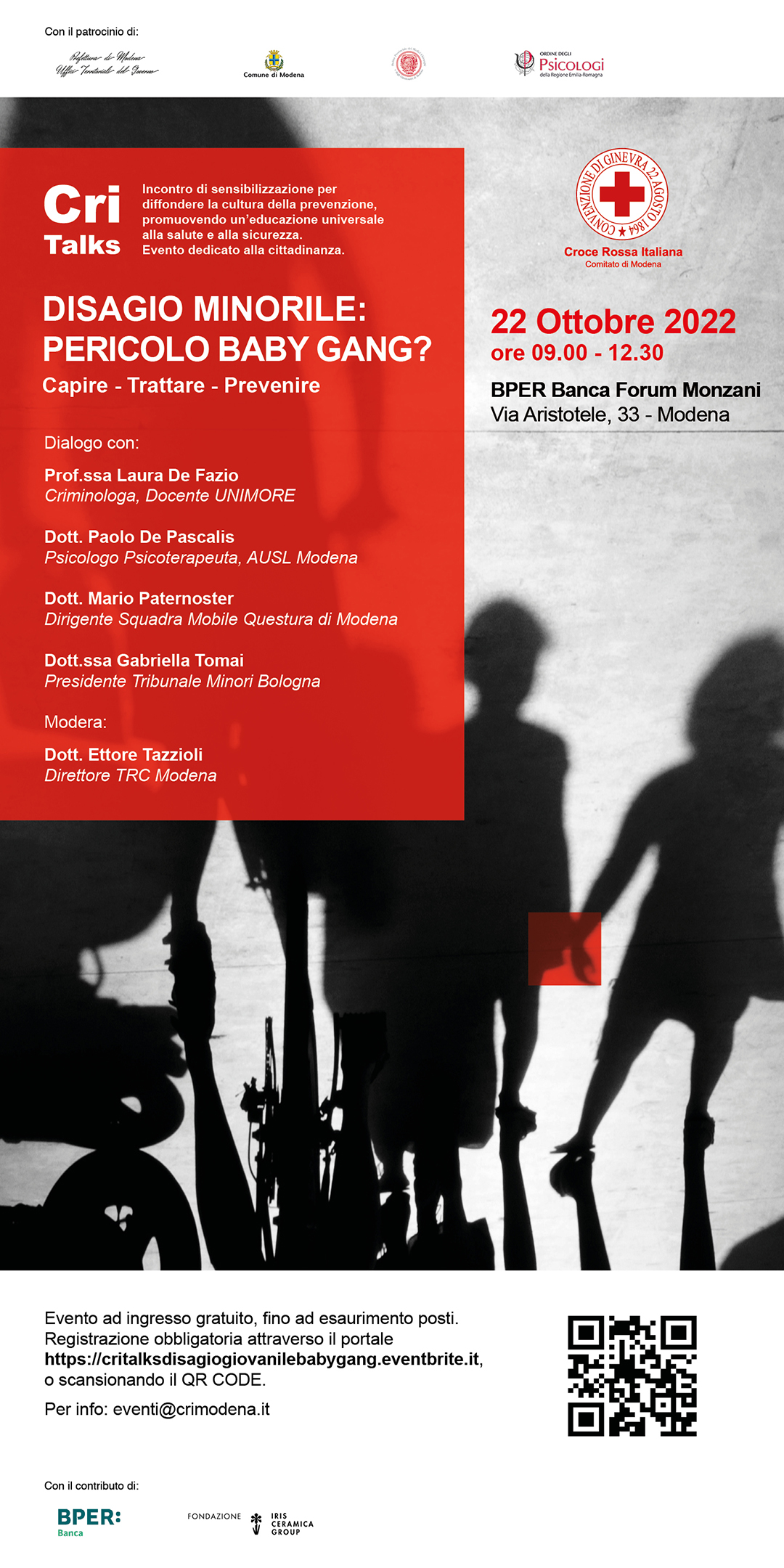 Registrazione obbligatoria attraverso il portale: https://critalksdisagiogiovanilebabygang.eventbrite.it o scansionando il QR code in locandina