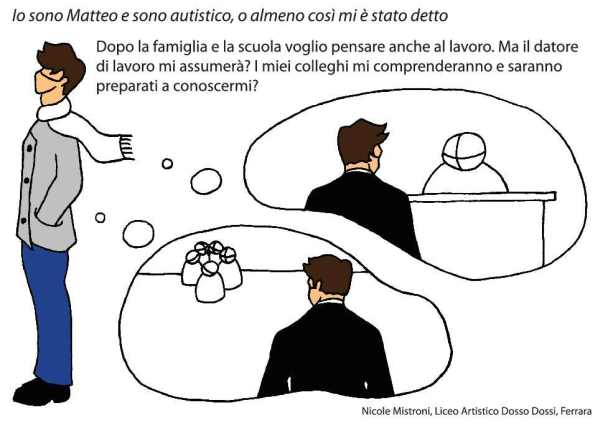 La serata è stata l’occasione per presentare 5 cartoline divulgative che raccontano la storia di Matteo, un ragazzo autistico immaginario, che vive però le difficoltà reali in cui si trovano giovani e adulti autistici. Ma non solo Matteo è il protagonista di questa storia, anche la famiglia, la scuola e il contesto lavorativo. Attraverso un linguaggio immediato e concreto è possibile così accedere ad un tema che coinvolge moltissime persone e famiglie.
